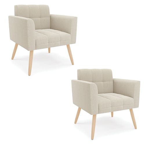 A Poltrona Elisa é uma poltrona que combina elegância, conforto e durabilidade. Ela tem um design retrô e sofisticado, com Pés Palito Natural e revestimento em tecido Bouclê Bege, que harmonizam com qualquer ambiente. Ela é ideal para sala de estar, recepções, escritórios, cozinhas ou qualquer outro espaço que você queira decorar com estilo e bom gosto. Ela tem uma estrutura em madeira de reflorestamento eucalipto, que garante a resistência e a sustentabilidade do produto. Ela suporta até 120 kg de peso, podendo ser utilizada por pessoas de diferentes biotipos. Ela tem um acabamento reforçado e espuma de qualidade D23, que oferece maciez e aconchego. Ela contém detalhes de costura no encosto e assento, resultando em um acabamento impecável, conferindo muito mais valor e elegância ao produto. A Poltrona Elisa é um móvel de alta qualidade, beleza e funcionalidade. Ela é fácil de transportar, pois tem um peso leve e um tamanho compacto. A Poltrona Elisa é um produto que vai fazer a diferença na sua decoração e no seu bem-estar. Ela vai trazer charme, conforto e durabilidade para o seu ambiente. Aproveite essa oferta e leve para casa uma poltrona de qualidade por um preço incrível. Essa é a sua chance de ter uma poltrona maravilhosa por um preço imperdível. Corra e garanta seu Kit 2 Poltronas antes que acabe o estoque!