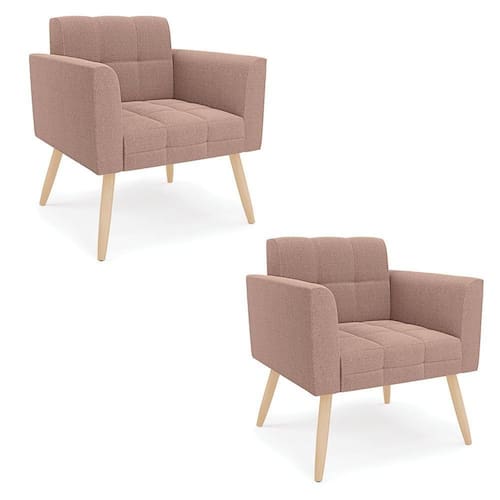 A Poltrona Elisa é uma poltrona que combina elegância, conforto e durabilidade. Ela tem um design retrô e sofisticado, com Pés Palito Natural e revestimento em tecido Bouclê Rosê, que harmonizam com qualquer ambiente. Ela é ideal para sala de estar, recepções, escritórios, cozinhas ou qualquer outro espaço que você queira decorar com estilo e bom gosto. Ela tem uma estrutura em madeira de reflorestamento eucalipto, que garante a resistência e a sustentabilidade do produto. Ela suporta até 120 kg de peso, podendo ser utilizada por pessoas de diferentes biotipos. Ela tem um acabamento reforçado e espuma de qualidade D23, que oferece maciez e aconchego. Ela contém detalhes de costura no encosto e assento, resultando em um acabamento impecável, conferindo muito mais valor e elegância ao produto. A Poltrona Elisa é um móvel de alta qualidade, beleza e funcionalidade. Ela é fácil de transportar, pois tem um peso leve e um tamanho compacto. A Poltrona Elisa é um produto que vai fazer a diferença na sua decoração e no seu bem-estar. Ela vai trazer charme, conforto e durabilidade para o seu ambiente. Aproveite essa oferta e leve para casa uma poltrona de qualidade por um preço incrível. Essa é a sua chance de ter uma poltrona maravilhosa por um preço imperdível. Corra e garanta seu Kit 2 Poltronas antes que acabe o estoque!