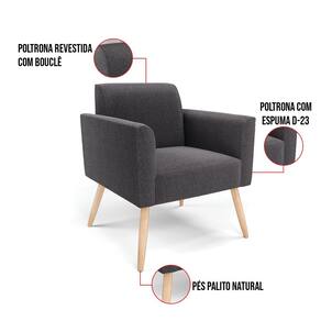 Poltrona Sala Estar Pé Palito Natural Marisa Bouclê D03 - D`Rossi - Grafite