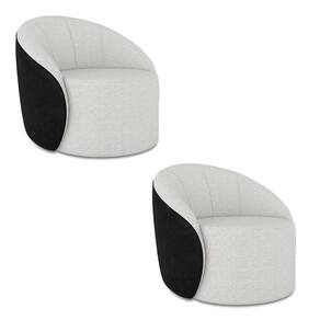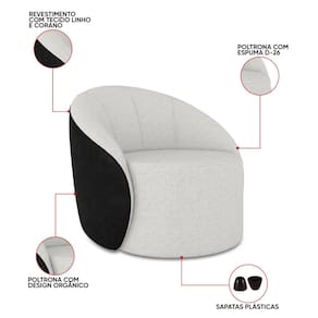 Poltrona Sala Orgânica Kit 2 Lua Fixa Sintético PU Preto/Linho D03 - D`Rossi - Cinza