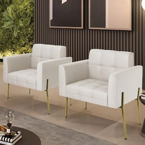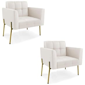 Que tal um Kit Poltrona que combine com a sua Sala De Estar, recepção ou seu quarto, que ofereça conforto e qualidade? Então você vai adorar a Poltrona Sala Pé Metal Dourado Kit 2 Ana Sintético Bege, da Ibiza!