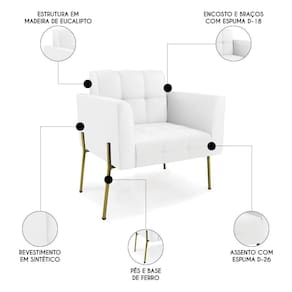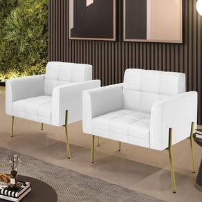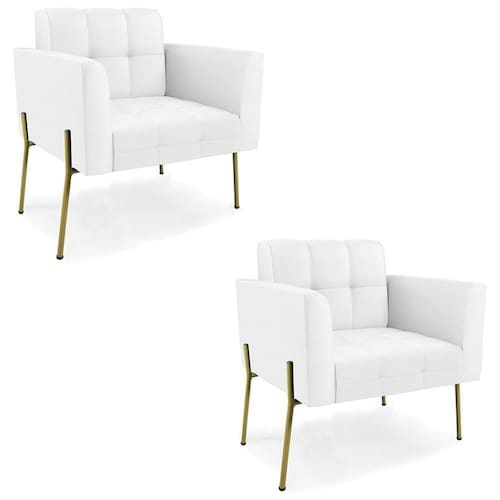 Que tal um Kit Poltrona que combine com a sua Sala De Estar, recepção ou seu quarto, que ofereça conforto e qualidade? Então você vai adorar a Poltrona Sala Pé Metal Dourado Kit 2 Ana Sintético Branco, da Ibiza!