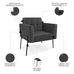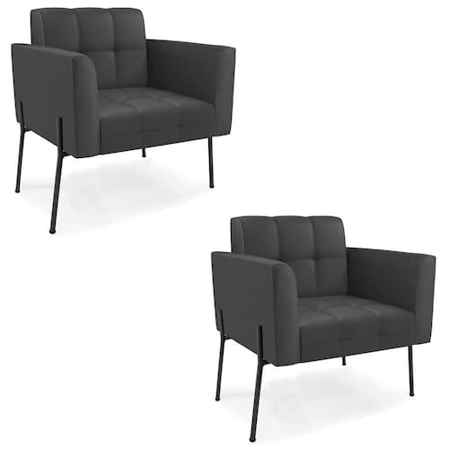 Você está procurando um Kit Poltrona que combine com a sua Sala De Estar, recepção ou seu quarto, que ofereça conforto e qualidade? Então você vai adorar a Poltrona Sala Pé Metal Preto Kit 2 Ana Sintético Preto, da Ibiza!
