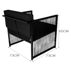 Poltrona Santiago Para área Externa De Corda Náutica Preto/preto A Poltrona Santiago, possui um design artesanal lindo e inovador, deixando seu ambiente ainda mais valorizado. Produzido com material de alta qualidade em aco carbono, conta com assento estofado Impermeavel e espuma D28, alem disso possui acabamento em Corda Nautica, o que proporciona uma adicao excepcional de elegancia ao seu ambiente. Podendo ser usada perto da piscina, no jardim, sala de estar, varanda e onde voce desejar. ESPECIFICACOES TECNICAS: -Material da Estrutura: Aco Carbono; -Material do Enchimento do Assento: Espuma D28; -Material do Encosto: Corda Nautica; -Revestimento do Assento: Impermeavel; -Possui Regulagem de Altura? Nao; -E Giratoria? Nao; -Quantidade de Lugar: 1 Lugar; -Garantia: 3 Meses; -Necessita de Montagem: Nao; -Instrucoes de Cuidado: Limpar com pano umedecido e sabao neutro; -Dimensoes do Produto (LarguraXProfundidadeXAltura): 60x73x65cm; -Conteudo da Embalagem: 01 Poltrona; Marca: ACESSE MÓVEIS