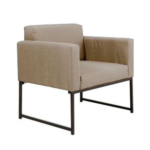 Poltrona Sara é composta por madeira de reflorestamento 25 mm, assento e encosto com enchimento em espuma D26, pés em aço pintado, acabamento liso, revestimento em linho