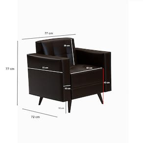 A sua sala de estar para estar completa merece o Sofá Vitrola, seja para receber a família e amigos ou curtir o seu momento de descanso. Tem como principal característica o conforto e o estilo retrô. Excelente estrutura composta por madeira de reflorestamento e tecido com toque agradável tornando esse produto mais do que especial. Acompanha Almofadas extras: Não Acompanha Puff: Não Almofada do assento: Fixa Almofada do encosto: Não Possui Altura do assento até o chão: 43 Altura do Encosto: 39 Altura dos Pés: 15 Ambiente Principal: Sala de Estar Complexidade da Montagem: Baixa: pode ser montado por uma pessoa sozinha Cor: Marrom Cor do Produto: Marrom Design Assinado: Sim Enchimento do Assento: Espuma D-23 Enchimento do Braço: Espuma D-23 Enchimento do Encosto: Não Possui Encosto para a Cabeça: Não Estampado: Não Extensível: Não Firmeza do Assento: Médio Informações Complementares: Sofá fixo com estrutura em madeira de eucalipto e pinnus, composto com percinta elástica, manta siliconada e espuma d23. Revestido com tecido Sintético Café. Pés de madeira na cor marrom. Itens Inclusos: 1 Poltrona Linha ou Coleção: Vitrola Material do Braço: Sim Material dos Pés: Madeira Modelo de Poltrona: Fixo Necessita Montagem: Sim Origem do Produto: Nacional Peso: 22 Possui Percintas Elásticas: Sim Possui Pés: 04 Possui Rodízio: Não Recomendações de Uso, Manutenção e Limpeza: Seguir o manual de instruções Resistente à Chuva: Não Rodízio com Trava: Não Sistema de Montagem: Colocar os pés Suporta Até (kg): 120 Tecido Predominante: Couro Tipo de Assento: Fixo Tipo de Encosto: Fixo Tipo de Espuma do Assento: Espuma Convencional Tipo de Espuma do Encosto: Espuma Convencional Tipo de Poltrona: Decorativa