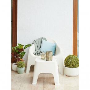 Poltrona Skarpo - Branco Branco A Poltrona Skarpo é feita de plástico super resistente e duravel, com um design exclusivo. Sua versatilidade e fácil mobilidade permite que utilize em diversos ambientes, inclusive área externa, acompanha uma mesa de centro.Possui proteção contra raios UV e furo no assento para que não acumule água. Otimizam espaço se forem guardados, pois são itens empilháveis.Todos os nossos produtos de plástico são fáceis de limpar, resistentes aos raios UV e são projetados para não danificar o meio ambiente.Medidas Poltrona:Peso: 6,3kg.Suporta ate: 150kg.Altura: 72cm.Largura: 72cm.Profundidade: 74cm.Altura do chão ao assento: 40cm. Material estrutura: Polipropileno. NA