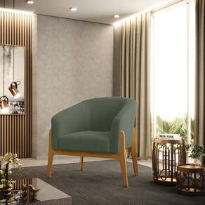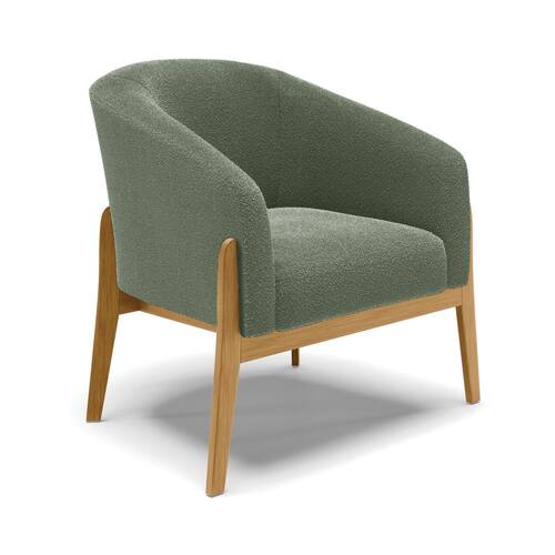 Poltrona Stella Bouclê Base Madeira Castanho - D`Rossi - Verde Cinza