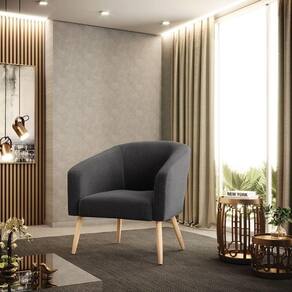 Poltrona Stella Bouclê Grafite Pés Palito Natural - D'rossi