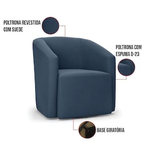 Olha só essa novidade, nossa linda Poltrona Stella Max Giratória! Um estofado que possui um design único, sofisticado e moderno, perfeito para relaxar, ler aquele bom livro ou ver sua série favorita. A Poltrona Stella Max Giratória é fabricada sob alto padrão de qualidade, para atender sua expectativa e necessidade. Seu aspecto arredondado e anatômico, possibilita que a postura fique sempre alinhada, mantendo a coluna na posição correta. Ela dispõe de um acabamento impecável, revestida em Suede em tom Azul Marinho, um tecido fácil de limpar, super macio e muito resistente ao desgaste. Com uma estrutura robusta, sua sustentação é dada pela base giratória em metal, com formato de disco, não aparente que fica embutida. Já o enchimento é feito em espuma D-23 no encosto e assento, garantindo maior conforto e segurança ao usuário. É contemporânea e indicada para qualquer ambiente, sendo uma ótima sugestão para usá-la em área comercial, como consultórios, recepção, escritório, sala de espera, dentre outros. Ou em ambientes residenciais como quartos, sala de estar, deixando o local com uma aparência mais moderna e elegante. Gostou de conhecer sobre ela? Então não perca essa chance e adquira já a sua!