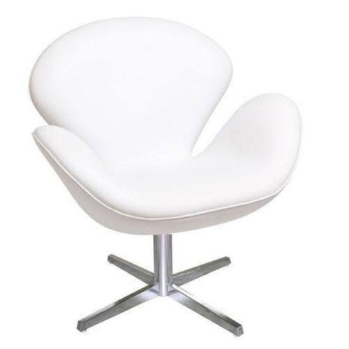 A poltrona Swan apresenta um assento e encosto curvados em uma única peça, sem ângulos retos, proporcionando um visual fluido e sofisticado. Sua estrutura é feita de uma concha de poliuretano reforçada com fibra de vidro, montada sobre uma base giratória de alumínio polido. O estofamento pode ser de tecido ou couro, disponível em uma variedade de cores vibrantes e neutras.