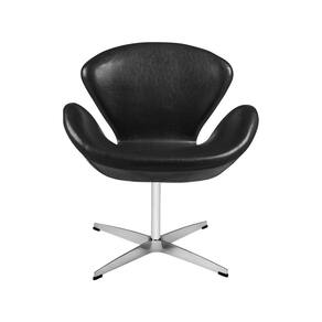 AS IMAGENS SÃO MERAMENTE ILUSTRATIVAS E PODEM SOFRER VARIAÇÕES DE COR E PEQUENOS DETALHES DE ACORDO COM O SEU MONITOR, ILUMINAÇÃO DO AMBIENTE E ATÉ MESMO A SUA PERCEPÇÃO VISUAL.Poltrona Swan Couro Natural Preto Base AlumÃnio GiratÃria