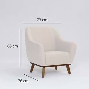 A poltrona Paloma une qualidade, conforto e resistência em cada detalhe. Sua estrutura é produzida com madeiras de eucalipto tratado, MDF e OSB, garantindo durabilidade e firmeza, reforçadas por grampos galvanizados. O assento conta com percintas elásticas de nylon e espumas certificadas, que suportam até 100 quilos sem perder o conforto. Já o revestimento com costura rebatida oferece acabamento superior e maior resistência à abertura de costuras, prolongando a vida útil do estofado. Uma peça robusta, elegante e feita para durar no seu dia a dia. Acompanha Almofadas extras: Não Acompanha Puff: Não Almofada do assento: Fixa Almofada do encosto: Não Possui Altura do assento até o chão: 44 cm Altura do Encosto: 51 cm Altura dos Pés: 20 cm Ambiente Principal: Sala de Estar codigo_ean: 7900288224231 Cor: Pérola Cor do Produto: Pérola Design Assinado: Não Enchimento do Assento: Espuma D-28 Encosto para a Cabeça: Não Estampado: Não Extensível: Não Firmeza do Assento: Médio Itens Inclusos: 1 Poltrona Linha ou Coleção: Paloma Marca: Domi Material dos Pés: Madeira Modelo de Poltrona: Fixo Necessita Montagem: Não Origem do Produto: Nacional Peso: 23,8 kg Possui Percintas Elásticas: Sim Possui Pés: 04 Possui Rodízio: Não Recomendações de Uso, Manutenção e Limpeza: Indicado para uso residencial, sua limpeza deve ser feita com pano úmido com água limpa, sem esfregar. Pode passar alcool líquido de uso doméstico na limpeza. Nunca sentar nos braços ou encosto do produto. Suporta Até (kg): 100 kg Tecido Predominante: Linho Tipo de Assento: Fixo Tipo de Encosto: Fixo Tipo de Espuma do Assento: Espuma HR Tipo de Poltrona: Decorativa