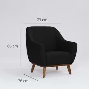 A poltrona Paloma une qualidade, conforto e resistência em cada detalhe. Sua estrutura é produzida com madeiras de eucalipto tratado, MDF e OSB, garantindo durabilidade e firmeza, reforçadas por grampos galvanizados. O assento conta com percintas elásticas de nylon e espumas certificadas, que suportam até 100 quilos sem perder o conforto. Já o revestimento com costura rebatida oferece acabamento superior e maior resistência à abertura de costuras, prolongando a vida útil do estofado. Uma peça robusta, elegante e feita para durar no seu dia a dia. Acompanha Almofadas extras: Não Acompanha Puff: Não Almofada do assento: Fixa Almofada do encosto: Não Possui Altura do assento até o chão: 44 cm Altura do Encosto: 51 cm Altura dos Pés: 20 cm Ambiente Principal: Sala de Estar codigo_ean: 7900288224392 Cor: Preto Cor do Produto: Preto Design Assinado: Não Enchimento do Assento: Espuma D-28 Encosto para a Cabeça: Não Estampado: Não Extensível: Não Firmeza do Assento: Médio Itens Inclusos: 1 Poltrona Linha ou Coleção: Paloma Marca: Domi Material dos Pés: Madeira Modelo de Poltrona: Fixo Necessita Montagem: Não Origem do Produto: Nacional Peso: 23,8 kg Possui Percintas Elásticas: Sim Possui Pés: 04 Possui Rodízio: Não Recomendações de Uso, Manutenção e Limpeza: Indicado para uso residencial, sua limpeza deve ser feita com pano úmido com água limpa, sem esfregar. Pode passar alcool líquido de uso doméstico na limpeza. Nunca sentar nos braços ou encosto do produto. Suporta Até (kg): 100 kg Tecido Predominante: Linho Tipo de Assento: Fixo Tipo de Encosto: Fixo Tipo de Espuma do Assento: Espuma HR Tipo de Poltrona: Decorativa