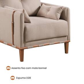 O conforto é garantido por uma estrutura interna de madeira Lyptus de reflorestamento, que oferece resistência e consciência ambiental. O assento fixo conta com espuma soft D28, molas bonnel e percinta italiana, proporcionando firmeza com toque macio. Já o encosto solto com pluma siliconada um encaixe ergonômico e envolvente, ideal para longos momentos de relaxamento.