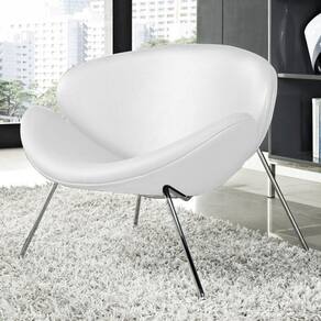 AS IMAGENS SÃO MERAMENTE ILUSTRATIVAS E PODEM SOFRER VARIAÇÕES DE COR E PEQUENOS DETALHES DE ACORDO COM O SEU MONITOR, ILUMINAÇÃO DO AMBIENTE E ATÉ MESMO A SUA PERCEPÇÃO VISUAL.Poltrona Trevo Couro SintÃtico Branco Base Cromada