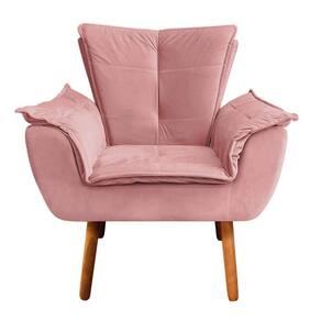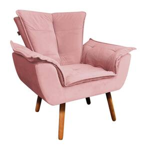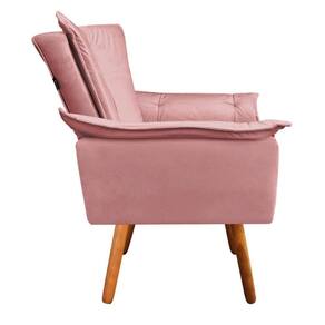 Poltrona Opala Veludo Rosê Pés Palito Castanho - D'Rossi