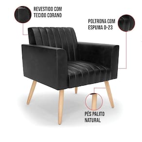 Poltrona Viena Gomada Corano Pés Palito Natural - D`rossi Cor Preto