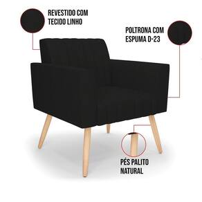 Quer uma decoração única e sofisticada? A Poltrona Viena é ideal para quem está em busca de um móvel versátil e diferenciado. Esse tipo de peça é ideal para ambientes modernos e descontraídos. Vem com uma ideia totalmente diferente, devido sua curva e forma suave, os detalhes gomados do tecido são tendências de decoração atuais. Uma dica legal de complemento é escolher almofadas que combinem com a poltrona. Sua estrutura é confeccionada em madeira de eucalipto proveniente de reflorestamento, o estofamento do assento é composto de espuma prorelax D-28 no encosto, e é revestido em Linho um tecido aconchegante, resistente e extremamente luxuoso. Sua sustentação é dada pelos tradicionais pés palito natural, suportando em média até 115 Kg. Crie um lindo efeito visual, em qualquer lugar da sua casa ou escritório! Garanta já sua Poltrona Viena.