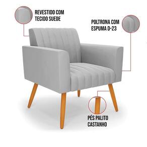 Quer uma decoração única e sofisticada? A Poltrona Viena é ideal para quem está em busca de um móvel versátil e diferenciado. Esse tipo de peça é ideal para ambientes modernos e descontraídos. Vem com uma ideia totalmente diferente, devido sua curva e forma suave, os detalhes gomados do tecido são tendências de decoração atuais. O tom Cinza vem ganhando cada vez mais espaço no mercado, uma cor que traz elegância e combina com vários tipos de decoração. Uma dica legal de complemento é escolher almofadas que combinem com a poltrona. Sua estrutura é confeccionada em madeira de eucalipto proveniente de reflorestamento, o estofamento do assento é composto de espuma prorelax D-28 no encosto, e é revestido em Suede um tecido aconchegante, resistente e extremamente luxuoso. Sua sustentação é dada pelos tradicionais Pés Palito Castanho, suportando em média até 115 Kg. Crie um lindo efeito visual, em qualquer lugar da sua casa ou escritório! Garanta já sua Poltrona Viena.