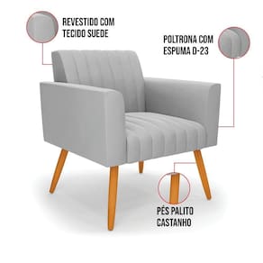 Poltrona Viena Gomada Suede Pés Palito Castanho - D`rossi Cor Cinza - Blush