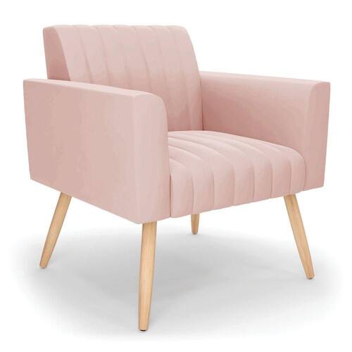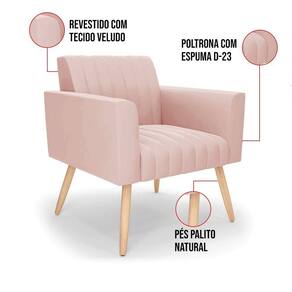 Poltrona Viena Gomada Veludo Pés Palito Natural - D`rossi Cor Rose - Blush