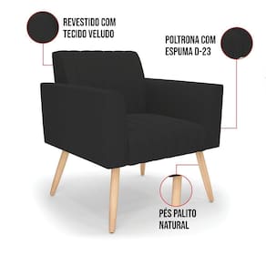 Quer uma decoração única e sofisticada? A Poltrona Viena é ideal para quem está em busca de um móvel versátil e diferenciado. Esse tipo de peça é ideal para ambientes modernos e descontraídos. Vem com uma ideia totalmente diferente, devido sua curva e forma suave, os detalhes gomados do tecido são tendências de decoração atuais. O tom Preto vem ganhando cada vez mais espaço no mercado, uma cor que traz elegância e combina com vários tipos de decoração. Uma dica legal de complemento é escolher almofadas que combinem com a poltrona. Sua estrutura é confeccionada em madeira de eucalipto proveniente de reflorestamento, o estofamento do assento é composto de espuma prorelax D-28 no encosto, e é revestido em Veludo um tecido aconchegante, resistente e extremamente luxuoso. Sua sustentação é dada pelos tradicionais pés palito natural, suportando em média até 115 Kg. Crie um lindo efeito visual, em qualquer lugar da sua casa ou escritório! Garanta já sua Poltrona Viena.