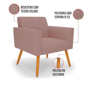Quer uma decoração única e sofisticada? A Poltrona Viena é ideal para quem está em busca de um móvel versátil e diferenciado. Esse tipo de peça é ideal para ambientes modernos e descontraídos. Vem com uma ideia totalmente diferente, devido sua curva e forma suave, os detalhes gomados do tecido são tendências de decoração atuais. O tom Rosê vem ganhando cada vez mais espaço no mercado, uma cor que traz elegância e combina com vários tipos de decoração. Uma dica legal de complemento é escolher almofadas que combinem com a poltrona. Sua estrutura é confeccionada em madeira de eucalipto proveniente de reflorestamento, o estofamento do assento é composto de espuma prorelax D-28 no encosto, e é revestido em Veludo um tecido aconchegante, resistente e extremamente luxuoso. Sua sustentação é dada pelos tradicionais Pés Palito Castanho, suportando em média até 115 Kg. Crie um lindo efeito visual, em qualquer lugar da sua casa ou escritório! Garanta já sua Poltrona Viena.