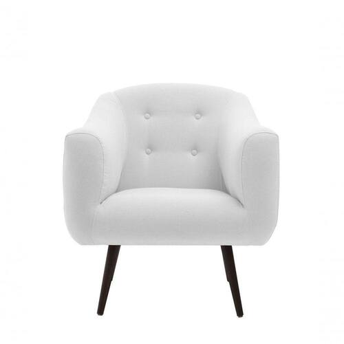 Poltrona fabricada em madeira de eucalipto, revestida com espuma D28 e tecido, detalhes de botonê em seu encosto. Pés em madeira tauari. Poltrona com estilo retrô, charmosa e elegante, deixará o seu ambiente e sua decoração ainda mais belos.
