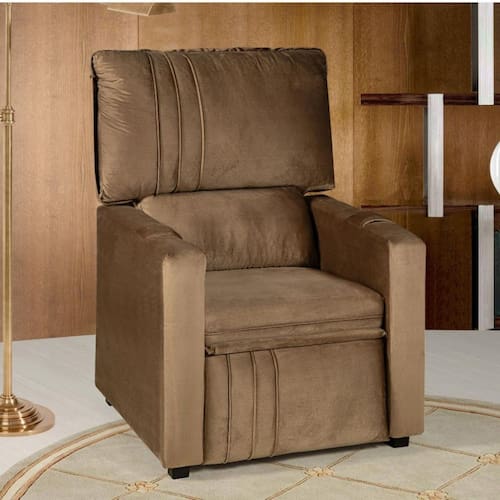Características: Mecanismo de Encosto Reclinável Espuma Assento D-26Kgm³ Enchimento da Almofada Fibras e Flocos 4 Pés Altura do chão até o assento: 47cm Tecido Veludo