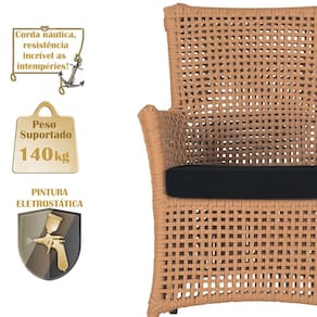 A corda náutica adiciona um toque de rusticidade moderna, enquanto o estofado impermeável garante que sua poltrona esteja sempre impecável, mesmo após uma chuva inesperada ou um acidente com líquidos.