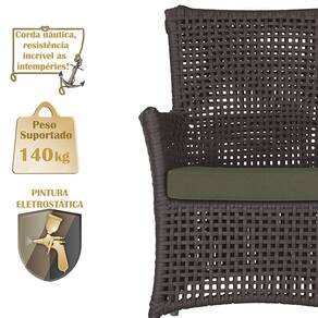 A corda náutica adiciona um toque de rusticidade moderna, enquanto o estofado impermeável garante que sua poltrona esteja sempre impecável, mesmo após uma chuva inesperada ou um acidente com líquidos.