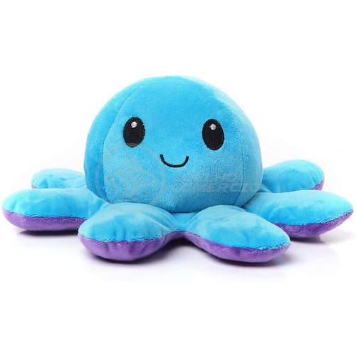 Polvo Reversível De Pelúcia Humor Feliz E Bravo Azul E Roxo