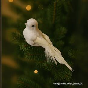 Encante sua decoração de Natal com a pomba decorativa, perfeita para trazer leveza, paz e sofisticação aos seus ambientes. Cada pomba mede 12cm de comprimento por 4cm de altura e é cuidadosamente revestida com tecido tipo felpudo branco, além de penas artificiais e detalhes em lantejoulas, que adicionam brilho sutil e elegante.
