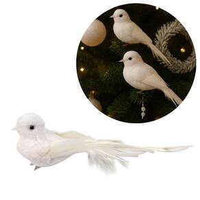 Pomba Branca Natal com Plumas e Lantejoulas 12cm com Presilha