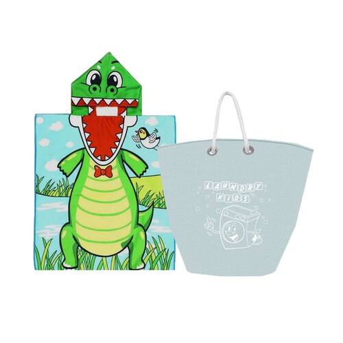 Poncho Infantil Toalha Capuz Jacare Cesto Lavanderia Verde