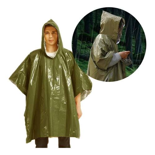 Poncho Térmico De Emergência Reutilizável Sob Verde-Escuro