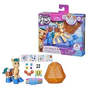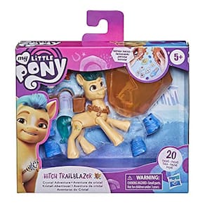 Conheça Hitch Trailblazer: um Pônei terrestre da Baía de Maretime! Hitch se dedica a ajudar Everypony como seu xerife atencioso. Abra uma surpresa mágica de cristal com Crystal Adventure Hitch Trailblazer. Inclui uma figura articulada de pônei amarelo de 3 polegadas com cabelo azul moldado. A figura tem um distintivo de xerife inspirado em caráter, Cutie Mark. Quebre o recipiente reutilizável em forma de cristal em 2 para revelar histórias ocultas e peças de personalização. Vem com lençóis e encantos para decorar o pônei e seus acessórios de fantasia. Ele pode carregar amigos de estimação nas costas colocando-os no acessório do porta-cesta! Inclui um bracelete de amizade arco-íris para crianças. Procure por Petals Princesa Crystal Adventure, Zipp Storm, Izzy Moonbow e brinquedos Sunny Starscout. Todas as figuras inspiradas em filmes My Little Pony: A New Generation são com o playset da Royal Racing Ziplines! (Figuras e playset cada vendido separadamente. Sujeito à disponibilidade.) Meu Pequeno Pônei e todos os personagens relacionados são marcas registradas da Hasbro.