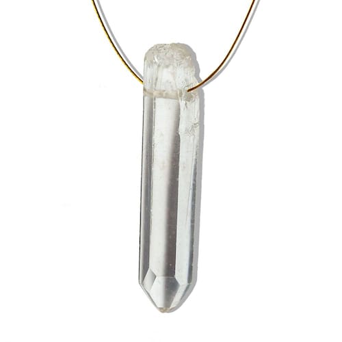 Pontinha de Quartzo Lemurian com Furo Lateral – Ideal para Montagem de Colares ou Artesanato 1 unidade de pontinha de Quartzo Lemurian com furo na lateral da pedra.O furo é atravessado, feito manualmente, e pode apresentar acabamento rústico. Ideal para passar fio fino em colares, pingentes, macramês ou ornamentos diversos. Características da Pedra: