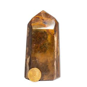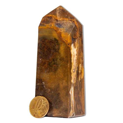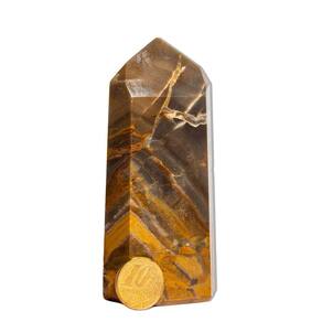 Esta peça única de Jaspe Monet é uma pedra natural mineral lapidada manualmente em formato de gerador sextavado com 6 faces e pico. Com cores vibrantes de marrom, rajas bege, cinza e toques de branco, ela é perfeita para colecionadores, práticas esotéricas ou para decorar ambientes, trazendo energia e sofisticação. Características:\nNome da Pedra: Jaspe Monet Cores: Marrom / Amarelo Queimado. O jaspe monet é uma pedra semipreciosa que pode ter cores terrosas, como marrom, verde, amarelo e vermelho. Corte: Gerador lapidado manual com 6 faces Claridade: Denso e brilhoso Medidas Aproximadas: 10 a 11 cm Peso Aproximado: 190 a 330 gramas Origem: Brasil (América do Sul)\nPor se tratar de um material natural, as pedras podem apresentar variações nas cores, veios e tonalidades. Estas características naturais não podem ser motivo de recusa do produto. As variações nas cores, veios e tonalidades são normais para a jaspe monet, pode receber uma variação que não se apresenta na foto(de acordo com estoque) Observação: Por ser uma pedra natural, pode apresentar variações nas tonalidades e grafismos, além de pequenas inclusões que podem se assemelhar a fissuras – um fenômeno natural em minerais autênticos. Recomendamos hidratação com óleo mineral para maior preservação. Ideal para quem busca uma peça única e cheia de energia para o seu espaço ou coleção. Marca: CristaisdeCurvelo
