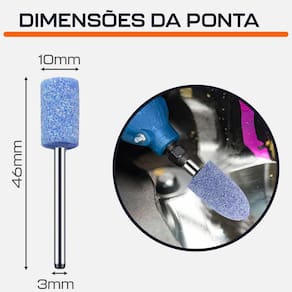Ponta montada 10mm cilíndrica rebolo abrasivo azul haste 3mm para micro retíficas dremax - marca: dremax - referência: pm046 - diâmetro da haste: 3mm - diâmetro da ponta: 10mm - altura da ponta: 16mm - comprimento total: 46mm - formato: cilíndrica - as pontas montadas azuis permitem um acabamento mais fino que as tradicionais pontas rosas - material da ponta: óxido de alumínio zircônia azul corundum - indicada para limpezas e acabamentos em superfícies - uso em micro retíficas de qualquer marca com mandril de 3mm - indicada para afiação, esmerilhamento e desbaste em metais, joias, pedras preciosas, vidro, entre outros materiais - seu formato facilita o trabalho em locais de difícil acesso - garantia: 90 dias contra defeitos de fabricação a dremax é a primeira e única marca brasileira dedicada exclusivamente às micro retíficas, acessórios e acoplamentos para esta indispensável ferramenta. Seja para trabalhos de precisão, artesanato, modelagem ou reparos, a dremax tem o produto certo para você Como identificar a melhor ponta montada para você - ponta montada amarela: alta dureza para polimento fino - ponta montada azul: :alta dureza para acabamento médio - ponta montadas rosa: alta dureza e tenacidade acabamento grosso - ponta montada borracha verde: flexível, para retificação e polimento precisos - ponta montada de couro: desempenho melhor do que a ponta de borracha verde, também ideal para polimento - ponta montada borracha com abrasivos: retificação mais nítida e rápida - ponta montada de feltro: polimento fino em metais e materiais não metálicos Marca: Dremax