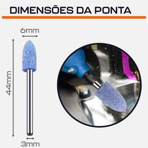 Ponta montada 6mm tipo bala rebolo abrasivo azul haste 3mm para micro retíficas dremax - marca: dremax - referência: pm049 - diâmetro da haste: 3mm - diâmetro da ponta: 6mm - altura da ponta: 14mm - comprimento total: 44mm - formato: bala cônica - as pontas montadas azuis permitem um acabamento mais fino que as tradicionais pontas rosas - material da ponta: óxido de alumínio zircônia azul corundum - indicada para limpezas e acabamentos em superfícies - uso em micro retíficas de qualquer marca com mandril de 3mm - indicada para afiação, esmerilhamento e desbaste em metais, joias, pedras preciosas, vidro, entre outros materiais - seu formato facilita o trabalho em locais de difícil acesso - garantia: 90 dias contra defeitos de fabricação a dremax é a primeira e única marca brasileira dedicada exclusivamente às micro retíficas, acessórios e acoplamentos para esta indispensável ferramenta. Seja para trabalhos de precisão, artesanato, modelagem ou reparos, a dremax tem o produto certo para você Como identificar a melhor ponta montada para você - ponta montada amarela: alta dureza para polimento fino - ponta montada azul: :alta dureza para acabamento médio - ponta montadas rosa: alta dureza e tenacidade acabamento grosso - ponta montada borracha verde: flexível, para retificação e polimento precisos - ponta montada de couro: desempenho melhor do que a ponta de borracha verde, também ideal para polimento - ponta montada borracha com abrasivos: retificação mais nítida e rápida - ponta montada de feltro: polimento fino em metais e materiais não metálicos Marca: Dremax