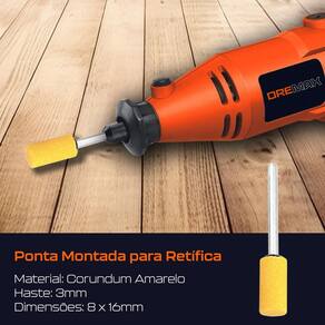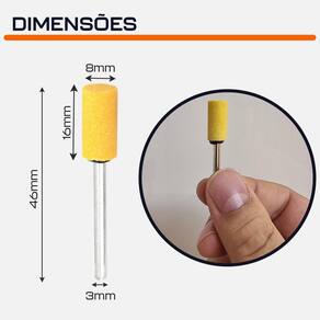 Ponta Montada Amarela 8mm Abrasiva Desbaste Fino Haste 3mm para Micro Retifica Dremax - Marca: Dremax - Referência: PM011 - Diâmetro da cabeça: 8mm - Comprimento total: 46mm - Formato: Cilíndrica - Diâmetro da haste: 3mm - Gramatura: Grão 240 - Material da ponta: Óxido de alumínio Amarelo Corundum Premium - As pontas montadas AMARELAS são indicadas para uso geral, com resultado mais fino que as tradicionais pontas rosas - Uso em micro retíficas de qualquer marca com pinça de 3mm - Indicada para desbaste e pré-acabamento em metais, joias, pedras preciosas, vidro, entre outros materiais - Muito utilizada por ourives, relojoeiros, hobbistas e dentistas para desbastar e retificar peças em geral - Seu formato facilita o trabalho em locais de difícil acesso - : 90 dias contra defeitos de fabricação A DREMAX é a primeira e única marca brasileira dedicada exclusivamente às micro retíficas, acessórios e acoplamentos para esta indispensável ferramenta. Seja para trabalhos de precisão, artesanato, modelagem ou reparos, a DREMAX tem o produto certo para você. Marca: Não Informado Ean: 7734625994873