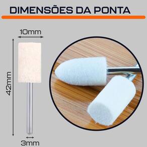 Ponta Montada de Feltro 10mm Cilíndrica Haste 3mm para Polimento com Micro Retíficas Dremax