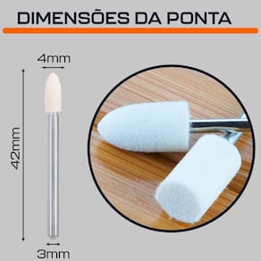 Ponta Montada de Feltro 4mm Cônica com Haste 3mm para Polimento com Micro Retíficas Dremax - Marca: Dremax - Referência: PM076 - Diâmetro da Ponta: 4mm - Comprimento: 42mm - Diâmetro da haste das pontas: 3mm - Indicado para polimentos - Formato: Cônica tipo bala - Uso em micro retíficas de qualquer marca que suporte prender hastes de 3mm - Para polir metais e plásticos em superfícies planas ou orifícios - Indicada para polimento de metais ferrosos ou não ferrosos, aço, aço inoxidável, alumínio, bronze, cobre, latão e plástico em geral - : 90 dias contra defeitos de fabricação A DREMAX é a primeira e única marca brasileira dedicada exclusivamente às micro retíficas, acessórios e acoplamentos para esta indispensável ferramenta. Seja para trabalhos de precisão, artesanato, modelagem ou reparos, a DREMAX tem o produto certo para você. Marca: Não Informado Ean: 7734625985475