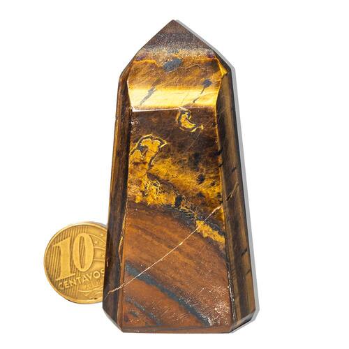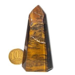 Essa ponta gerador de Olho de Tigre é uma pedra poderosa contra energias negativas. Ideal para quem busca força interior, foco e determinação no dia a dia. Nome da Pedra: Olho de TigreCor: Marrom com rajas pretas (variações naturais)Formato: Mini ponta gerador sextavadoTamanho Aproximado: 60 a 90 mmPeso Aproximado: 50 a 100 gramasClareza: Com brilho e sem transparênciaOrigem: Curvelo – MG (garimpo) Propriedades do Olho de Tigre\nPedra de proteção contra inveja e energias densas\nEstimula coragem, foco e autoconfiança\nUtilizada para fortalecer decisões e manter equilíbrio emociona\nOtima para carregar no bolso, altar ou mesa de trabalho\nObservação:Produto 100% natural, podendo apresentar variações nas tonalidades, grafismos e pequenas inclusões típicas de minerais de garimpo.Hidratada com óleo mineral para realçar o brilho.Compre apenas se estiver ciente das características naturais desta pedra! Marca: Não Informado