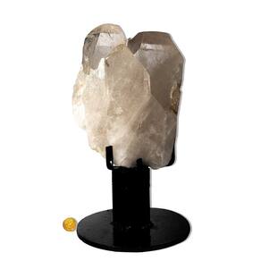 Adquira esta formação de ponta de quartzo cristal, um cristal natural impressionante, ideal para quem busca um item único e poderoso para energizar e embelezar seu ambiente. Esta peça fascinante vem com base serrada e é apoiada sobre uma fatia de geodo cristalizado polido manualmente, conferindo sofisticação e beleza. Ideal para:\nMesa de escritório Peso de papel Colecionadores de cristais Uso esotérico e energização de ambientes Presentes especiais e decoração\nDetalhes da Peça:\nNome da Pedra: Quartzo Cristal Cor da Pedra: Incolor, transparente Corte da Pedra: Ponta de quartzo bruta, com base para destacar a pedra Claridade da Pedra: Transparente, com excelente claridade Medidas Aproximadas: 29 cm com base e 19,5 x 15 cm sem base Peso Aproximado: 2.646g sem base. 3.870g com base Origem: Rio Grande do Sul, Brasil e Uruguai\nO Quartzo Cristal é amplamente conhecido por suas poderosas propriedades de purificação, amplificação de energias e clareza mental. Este cristal é perfeito para quem busca revitalizar a energia de seu ambiente e atrair boas vibrações. Cada peça é única, que potencializam a conexão energética, tornando-a uma adição rara e valiosa para sua coleção. Por que escolher a Ponta de Quartzo Cristal? Além de ser uma excelente adição à sua coleção, este cristal tem a capacidade de transformar a energia de seu espaço. A presença do quartzo cristal não só embeleza seu ambiente, mas também cria uma atmosfera de purificação, equilíbrio e harmonia. Perfeita para quem busca um toque esotérico e sofisticado, a ponta de quartzo cristal é ideal para o seu escritório, altar espiritual ou como um presente energético e elegante. Adquira agora a sua Ponta de Quartzo Cristal e transforme seu ambiente com a energia purificadora e revigorante desta pedra única! Marca: CristaisdeCurvelo
