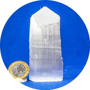 Quando esculpida em uma ponta, a Selenita Branca revela sua beleza natural em toda a sua glória Cada peça é uma obraprima da natureza, apresentando uma aparência que evoca tranquilidade e pureza