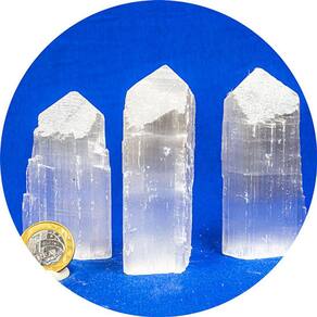 Nome da Pedra: Selenita Branca Cor da Pedra: Branco com iridescência Foto Ilustrativa Corte da Pedra: Ponta e Pé serrados, Corpo Bruto Claridade da Pedra: Cor sólida com brilho Medida da Pedra: 9 a 11 x 3 a 5 Centímetros Peso Total da Pedra: 83 Gramas Aproximadamente Origem: Brasil