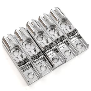 Ponte para Baixo de 5 Cordas, estilo individual e fixa, jogo com 5 unidades, acabamento cromado, Spirit Guitar Parts - IDV-5B-CR1561. Parafusos e chave allen para ajuste dos saddles estão incluídos. Ajuste das cordas e canhotos estão disponíveis. - Conjunto com 5 unidades - Largura: 15.0mm - Comprimento: 60.0mm